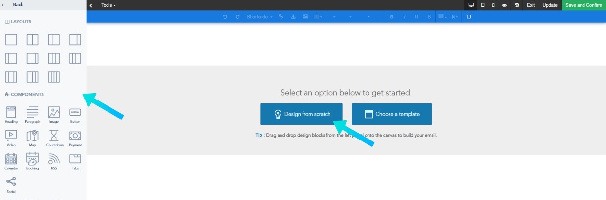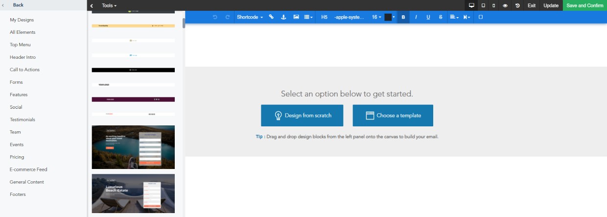 And the last option, you can create your own layout design by selecting Design from scratch or Design Elements. It will give you flexibility to choose elements that you need to build the website page.